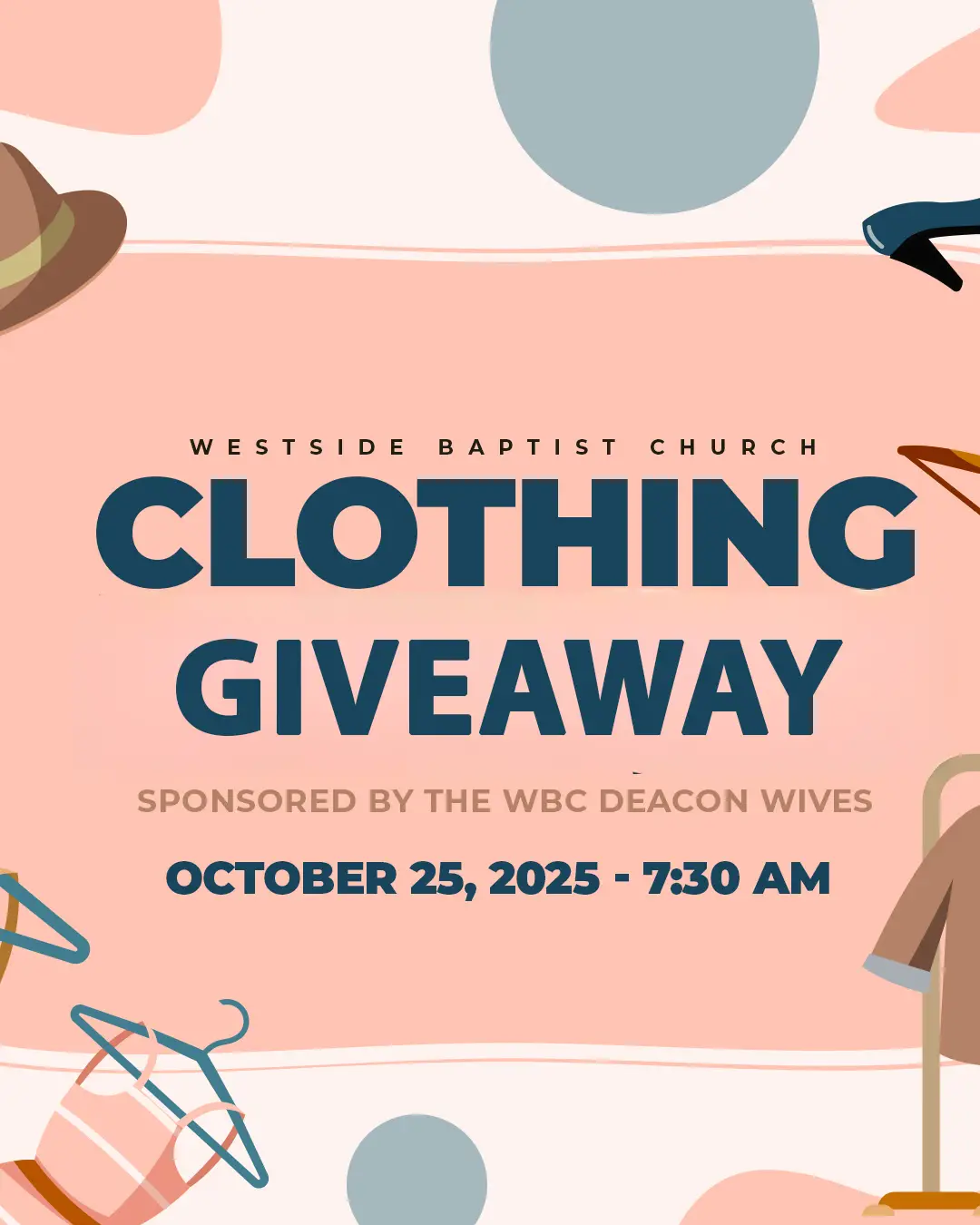 The Deacon Wives will be giving away gently used clothing to the community and to our WBC Church Family